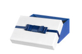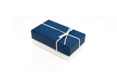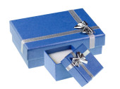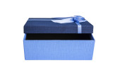 niebieskie pudełko z wstążką izolowane na białym tle