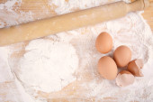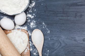 robienie ciasta na chleb lub domowe pieczywo. składniki na stole.