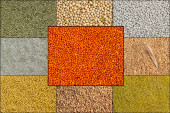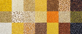 Zdjęcie "Projekt kolażu różnych ziaren, zbóż, płaski układ i widok panoramiczny" może być wykorzystywane do celów osobistych i komercyjnych zgodnie z warunkami zakupionej licencji Royalty-free. Obraz jest dostępny do pobrania w jakości wysokiej rozdzielczości do 5760x3840.