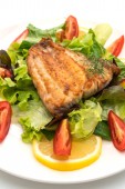 Naczynie rybne - smażony filet rybny z warzywami na białym tle