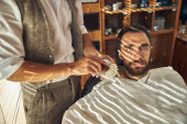 Zdjęcie "Dotknięty klient fryzjera ogolonego siekierą" może być wykorzystywane do celów osobistych i komercyjnych zgodnie z warunkami zakupionej licencji Royalty-free. Obraz jest dostępny do pobrania w jakości wysokiej rozdzielczości do 5760x3840.