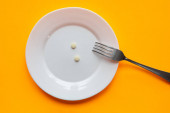 Talerz z groszkiem i sztućcami na tle koloru. Pojęcie anoreksji