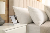 Zdjęcie "Szklanka wody i telefon komórkowy na podłokietniku w pokoju" może być wykorzystywane do celów osobistych i komercyjnych zgodnie z warunkami zakupionej licencji Royalty-free. Obraz jest dostępny do pobrania w jakości wysokiej rozdzielczości do 5760x3840.