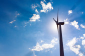 turbin wiatrowych nad chmury wypełnione błękitne niebo, alternatywnych źródeł energii tak