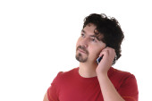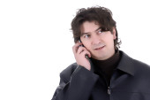 młody człowiek dorywczo w telefonie, na białym tle