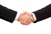 Biznesmeni uścisk dłoni w białym tle