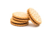 Herbatniki kanapkowe, wypełnione czekoladą, izolowane na białym tle