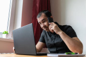 Zdjęcie "Biznesmen pracujący w domu z komputerem. Mała firma pracująca i robiąca interesy. Praca w domu podczas kwarantanny. Małe biuro. Koronawirus. Żel do dezynfekcji twarzy i maska." może być wykorzystywane do celów osobistych i komercyjnych zgodnie z warunkami zakupionej licencji Royalty-free. Obraz jest dostępny do pobrania w jakości wysokiej rozdzielczości do 5760x3840.