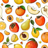 Szkic cytrusowy. Rysunek atramentem i akwarelami na białym tle.