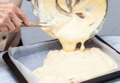 Zdjęcie "Close up of a sponge cake dough preparation" może być wykorzystywane do celów osobistych i komercyjnych zgodnie z warunkami zakupionej licencji Royalty-free. Obraz jest dostępny do pobrania w jakości wysokiej rozdzielczości do 5760x3840.