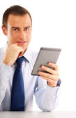 Zdjęcie "biznesmen za pomocą komputera planszetowe" może być wykorzystywane do celów osobistych i komercyjnych zgodnie z warunkami zakupionej licencji Royalty-free. Obraz jest dostępny do pobrania w jakości wysokiej rozdzielczości do 5760x3840.