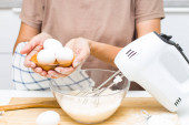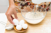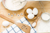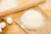 Na stole są jajka, sól, mąka i ciasto. Przygotowanie chleba