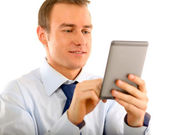 Zdjęcie "biznesmen za pomocą komputera planszetowe" może być wykorzystywane do celów osobistych i komercyjnych zgodnie z warunkami zakupionej licencji Royalty-free. Obraz jest dostępny do pobrania w jakości wysokiej rozdzielczości do 5760x3840.