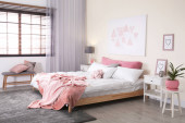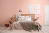 Zdjęcie "Wnętrze nowoczesnej stylowej sypialni" może być wykorzystywane do celów osobistych i komercyjnych zgodnie z warunkami zakupionej licencji Royalty-free. Obraz jest dostępny do pobrania w jakości wysokiej rozdzielczości do 5760x3840.