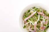 Zdrowa sałatka zielona z burakami i marchewką w białej misce odizolowana na białym tle. Pojęcie żywności dietetycznej.