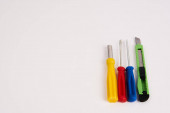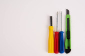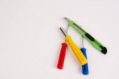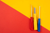 narzędzia budowlane śrubokręty na podwójnym tle naprawy sprzętu przemysłu