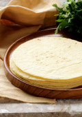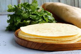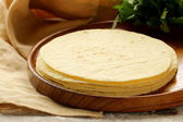 stos domowe pszennej mąki tortilli na drewnianym stołem