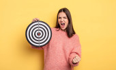 Młoda piękna kobieta wyglądająca na wściekłą, wkurzoną i sfrustrowaną krzyczącą WTF lub co z tobą nie tak. Koncepcja lata