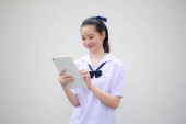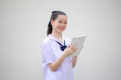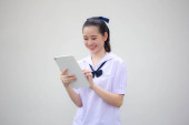 Zdjęcie "azjatyckie tajski gimnazjum student mundur piękna dziewczyna za pomocą jej telefon i uśmiech" może być wykorzystywane do celów osobistych i komercyjnych zgodnie z warunkami zakupionej licencji Royalty-free. Obraz jest dostępny do pobrania w jakości wysokiej rozdzielczości do 5760x3840.