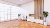 zen nowoczesny pusty pokój, minimalny design japoński styl. 3d renderowanie