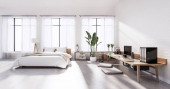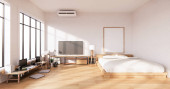 Zdjęcie "Sypialnia stylu poddasze z komputerem i narzędziem biurowym na biurku. Renderowanie 3D" może być wykorzystywane do celów osobistych i komercyjnych zgodnie z warunkami zakupionej licencji Royalty-free. Obraz jest dostępny do pobrania w jakości wysokiej rozdzielczości do 5760x3840.