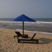 Puste leżaki na plaży morskiej Andaman z powodu COVID-19