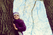 urocza dziewczyna w magiczny jesienny las siedzi na liściach