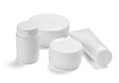 zbliżenie białego pojemnika kremu do piękna i tubki na białym tle