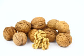Zestaw orzechów włoskich na białym tle. Koncepcja zdrowej przekąski.