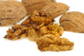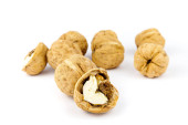 Zestaw orzechów włoskich na białym tle. Koncepcja zdrowej przekąski.