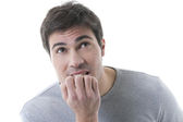 Zamyślony młody człowiek/przygnębiony młody człowiek