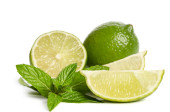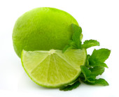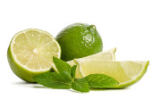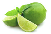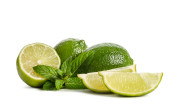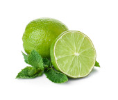 Zielona cytryna z liśćmi wyizolowanymi na białym tle..