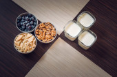 Zdjęcie "Domowej roboty granola w słoiku w stylu rustykalnym z drewnianym tłem. Zdrowa koncepcja posiłków wegańskich." może być wykorzystywane do celów osobistych i komercyjnych zgodnie z warunkami zakupionej licencji Royalty-free. Obraz jest dostępny do pobrania w jakości wysokiej rozdzielczości do 5760x3840.