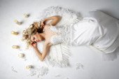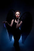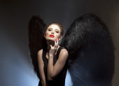 atrakcyjna kobieta, ubrana jak wołanie anioła w studio