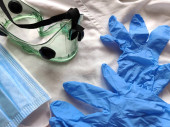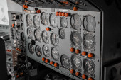 Stare maski oddechowe z czasów zimnej wojny, wiszące w ścianie.