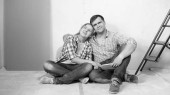 kobieta siedzi na podłodze i całował przez przystojny mężczyzna w ciąży