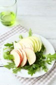 jabłko, owoc granatu i rukolą