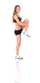 ładna brunetka w czarnych zużycie aktywnych na białym tle