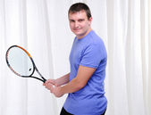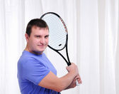 młody człowiek z rakieta tenisowa