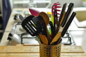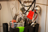 Zdjęcie "Narzędzia kuchenne w kuchni" może być wykorzystywane do celów osobistych i komercyjnych zgodnie z warunkami zakupionej licencji Royalty-free. Obraz jest dostępny do pobrania w jakości wysokiej rozdzielczości do 5760x3840.