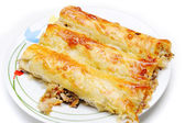 ciasto francuskie kok na białym tle na biały danie. zdrowe patty z rozszczepem