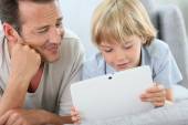 Zdjęcie "Ojciec i córka tabletki" może być wykorzystywane do celów osobistych i komercyjnych zgodnie z warunkami zakupionej licencji Royalty-free. Obraz jest dostępny do pobrania w jakości wysokiej rozdzielczości do 5760x3840.