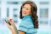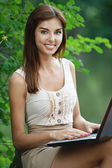 portret uroczą kobietą ciemnowłosą