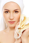 kobieta za pomocą gąbki