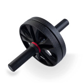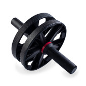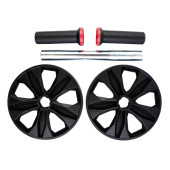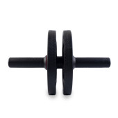 Ab Roller izolowany na białym tle. Dual Ab Roller z czarnego plastiku. Abs Roll Out Exercise Fitness Wheel Core Training Workout Wheels. Składany trenażer fitness.