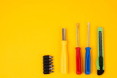 narzędzia budowlane śrubokręty na lekkim tle urządzenia dla przemysłu naprawczego