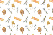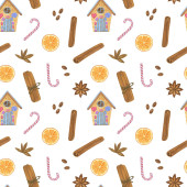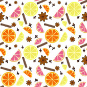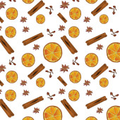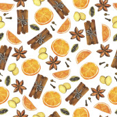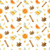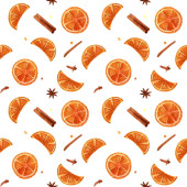 Boże Narodzenie przyprawa, anyż, cynamon, plasterek pomarańczy, cytryna plasterek zima święto wakacje akwarela ilustracja powtarzać wzór, na białym tle świąteczny nastrój obraz