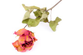 tło tekstury zielony liść i suszone kwiaty róży jesienią układ płaska leżak pocztówka styl na białym