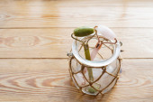Jesień lub jesień wystrój wnętrz domu. drewniana półka z białą ścianą