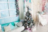 Zdjęcie "Białe choinki z prezentami pod spodem w salonie." może być wykorzystywane do celów osobistych i komercyjnych zgodnie z warunkami zakupionej licencji Royalty-free. Obraz jest dostępny do pobrania w jakości wysokiej rozdzielczości do 5760x3840.
